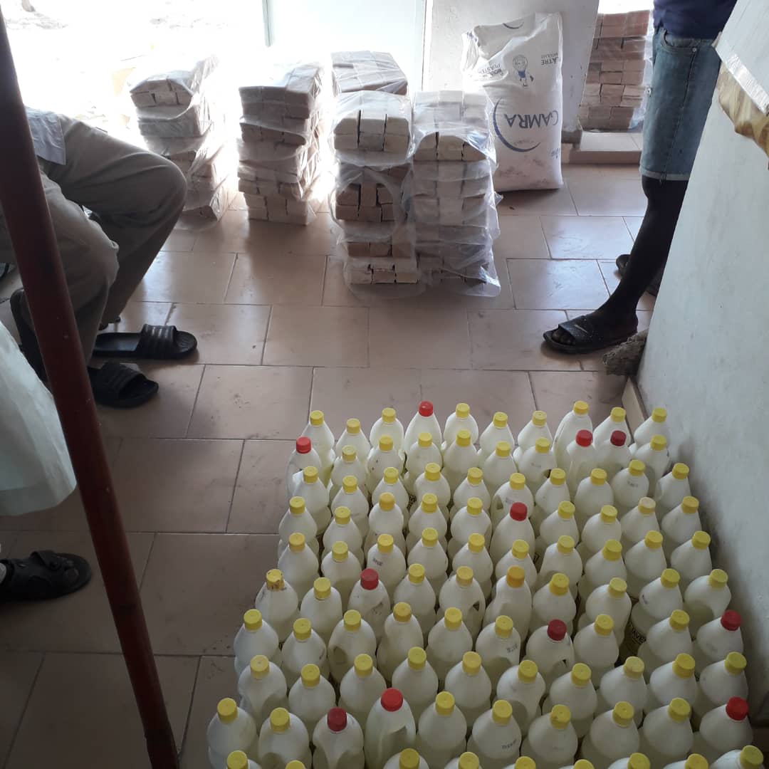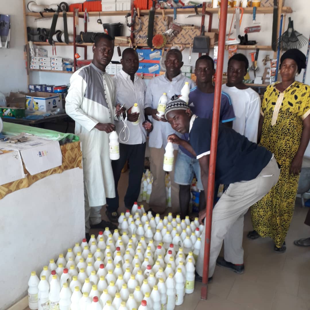 En partenariat avec le comité villageois de développement de Gagna et avec l'aide de Papa et Aida Coly, l'association "les Amis de Gagna" a acheté 1600 savons et 800 litres de Javel pour le village et les hameaux de Gagnabougou, et pour le poste de santé Mboulème qui dispense également des soins aux villageois de Gagna.
