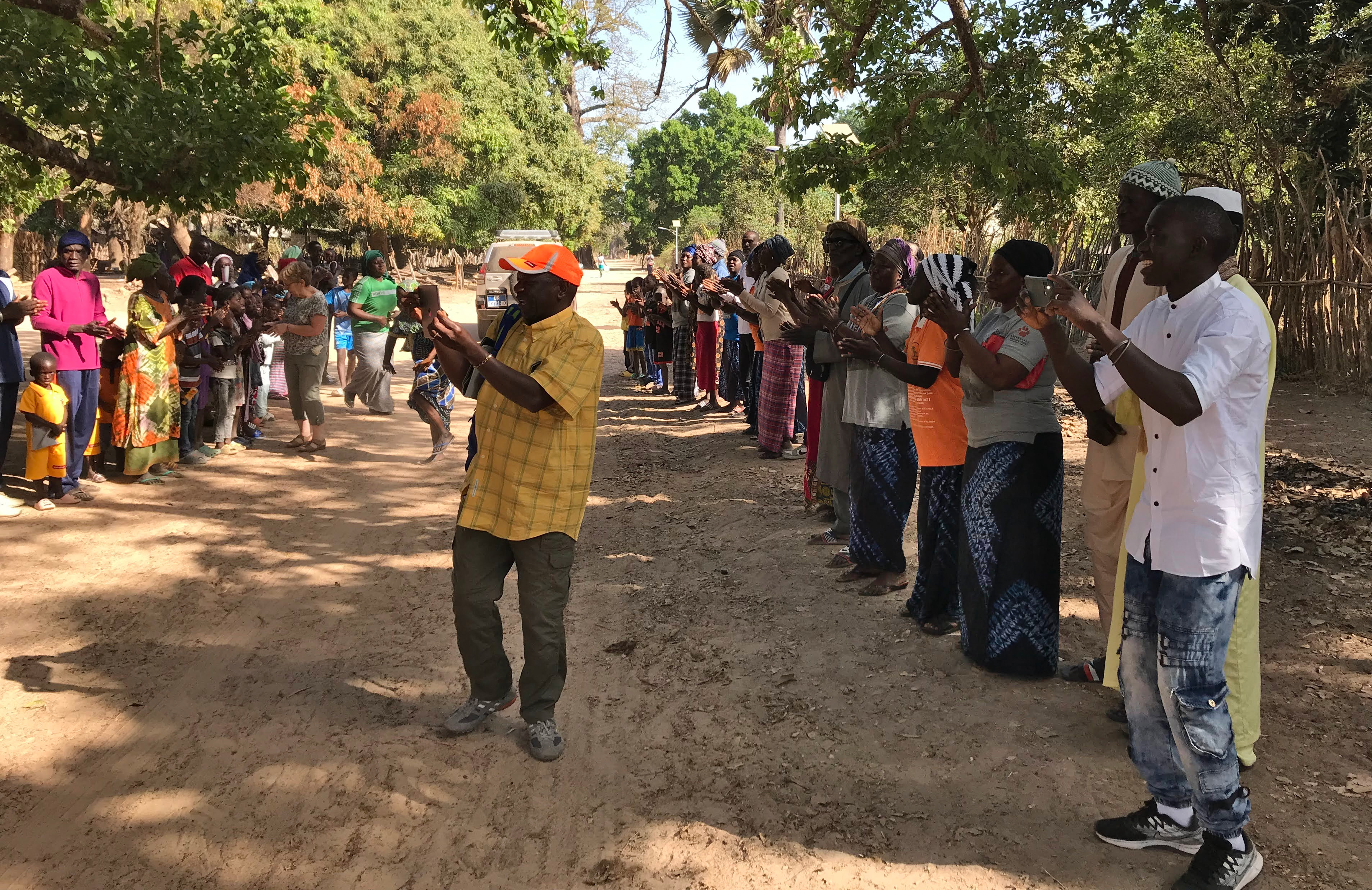 A notre arrivée, dès l’orée du village arboré, un formidable accueil nous attend : banderole à l’effigie de l’association, haie d’honneur agrémentée de chants et de danses, congratulations…