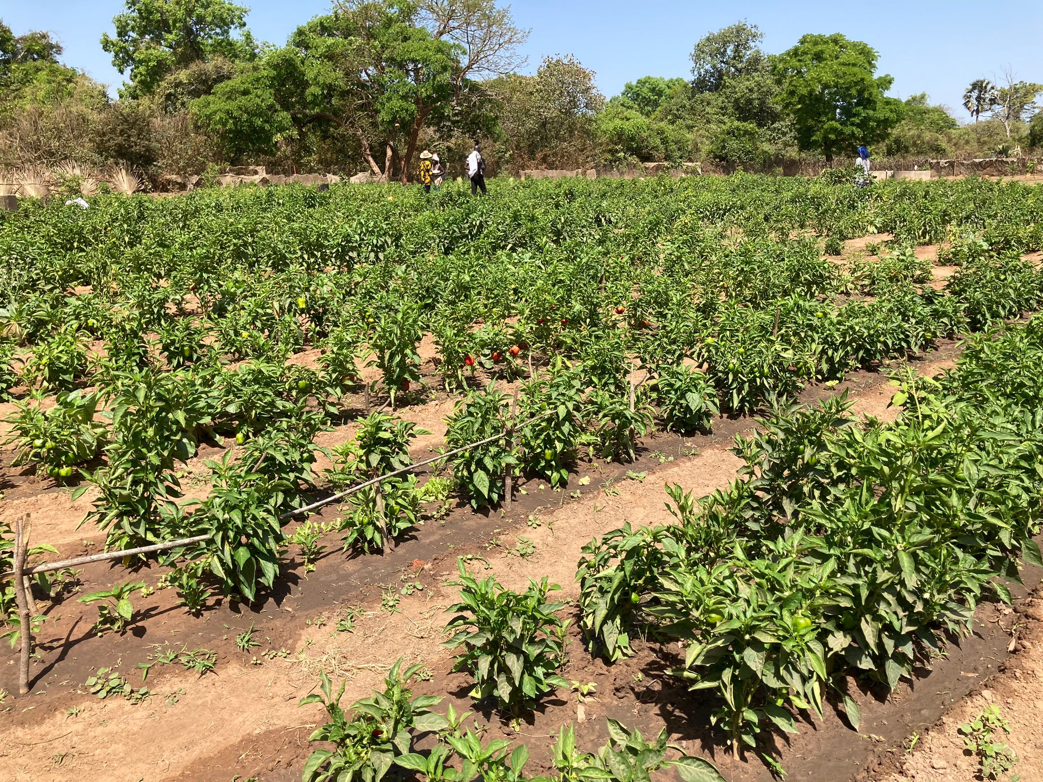 En fin de matinée, avant la trop grande chaleur, nous visitons le village en commençant par les rizières, le maraichage puis la case de santé, l’école, le local communautaire et le terrain de foot…