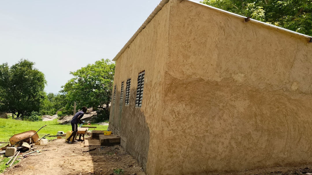 Les enduits et la dalle restent à terminer ainsi que des finitions (peintures...). Cela sera fait à la fin de l'hivernage.