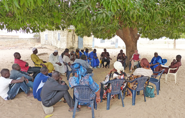 - Réunions avec le CVD, les producteurs du maraîchage, les responsables du tracteur, ceux de la case santé, du groupement des femmes, les fabricants des fours améliorés, un ingénieur agronome, les associations « un Village une Ecole » et « Partage d’espoir » qui travaillent aussi avec Gagna.