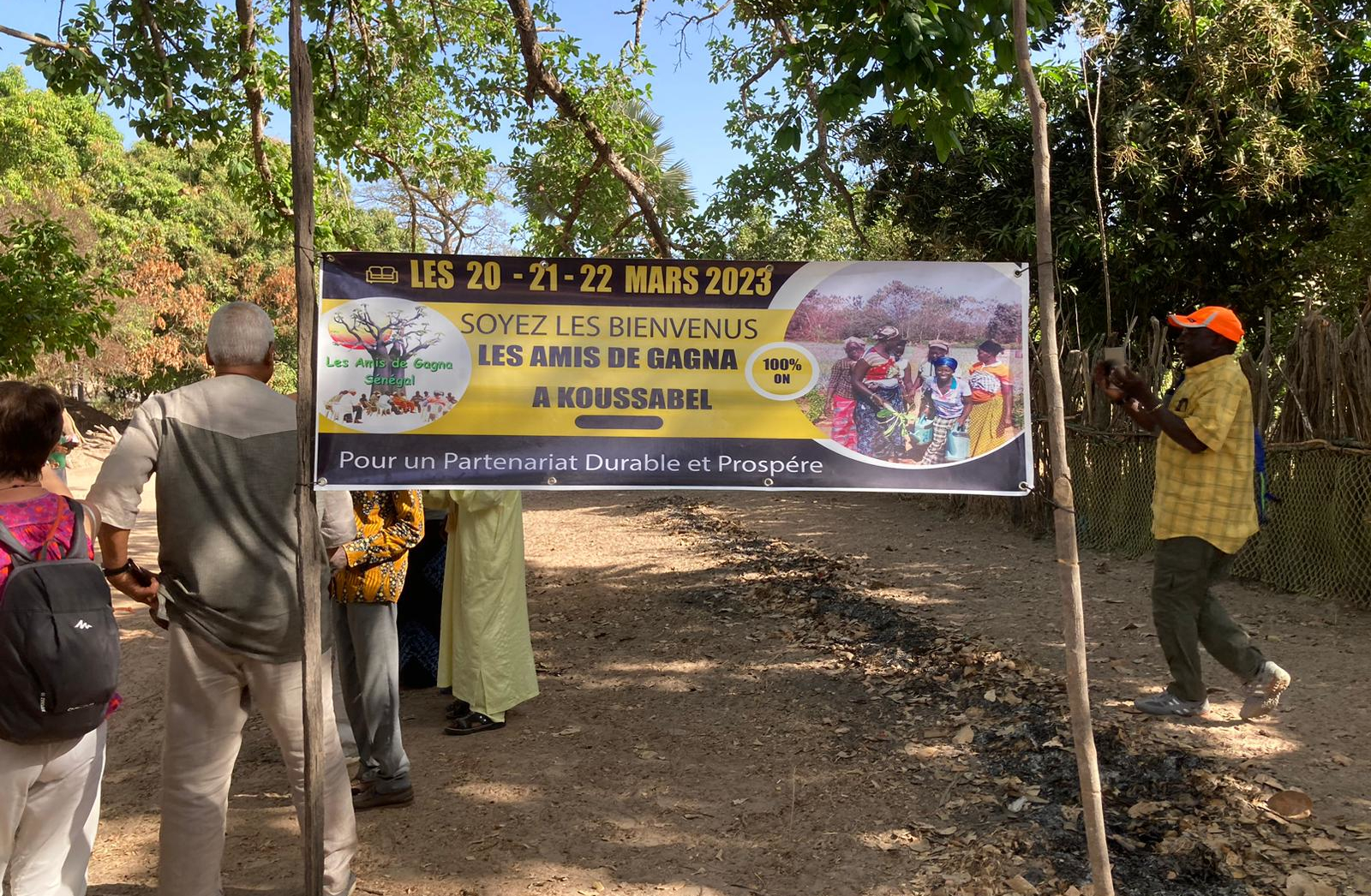 A notre arrivée, dès l’orée du village arboré, un formidable accueil nous attend : banderole à l’effigie de l’association, haie d’honneur agrémentée de chants et de danses, congratulations…
