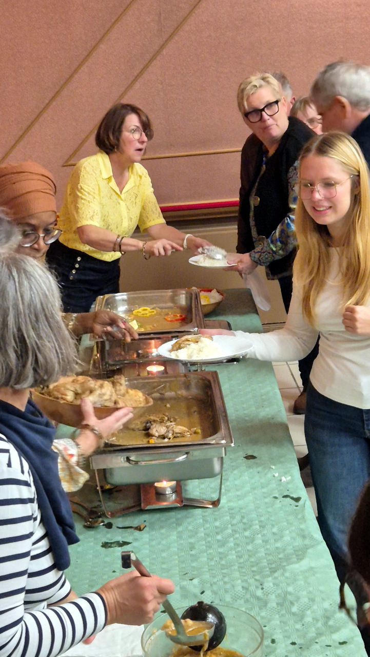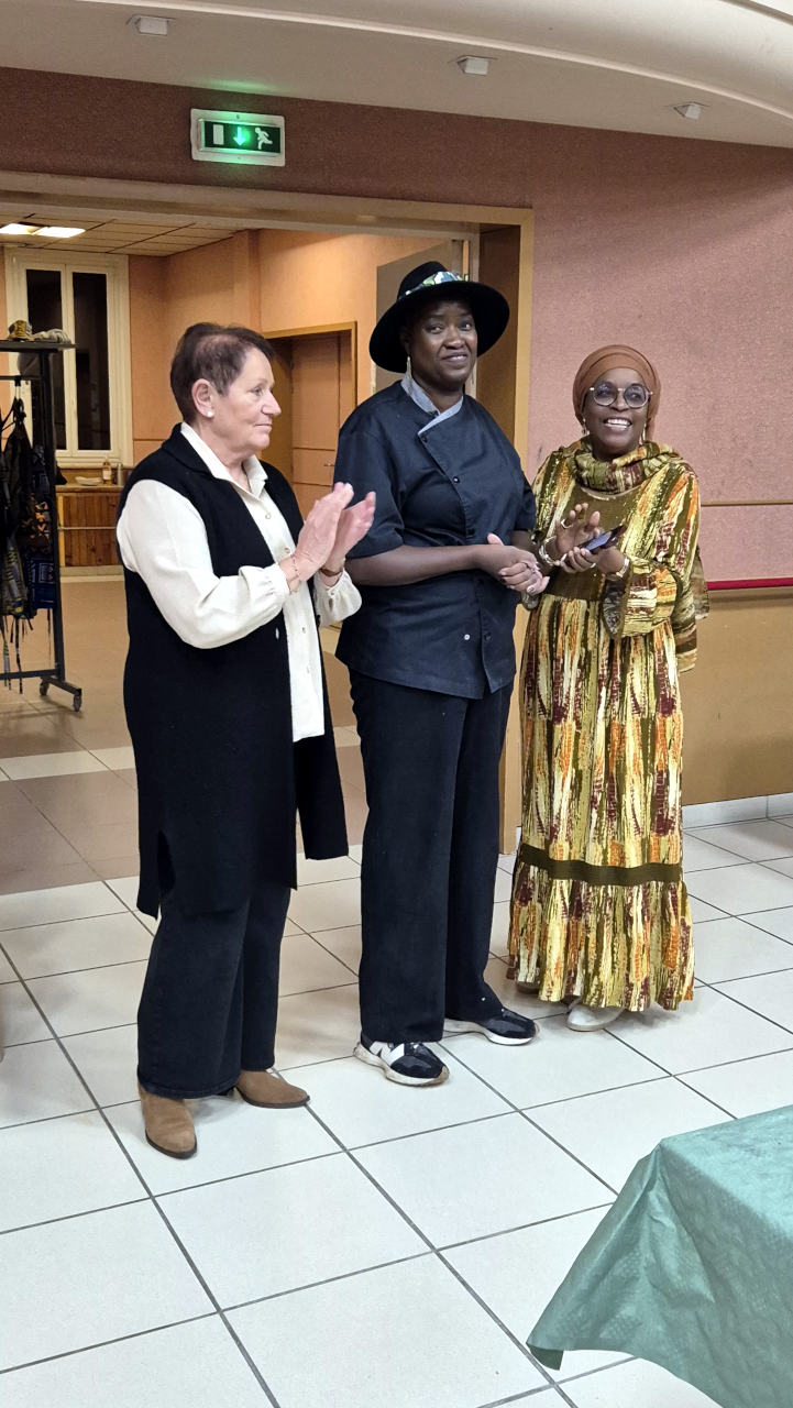 Autour d'un repas sénégalais (Poulet Yassa), en savourant les desserts confectionnés par les bénévoles, le tout entre chants et danses...